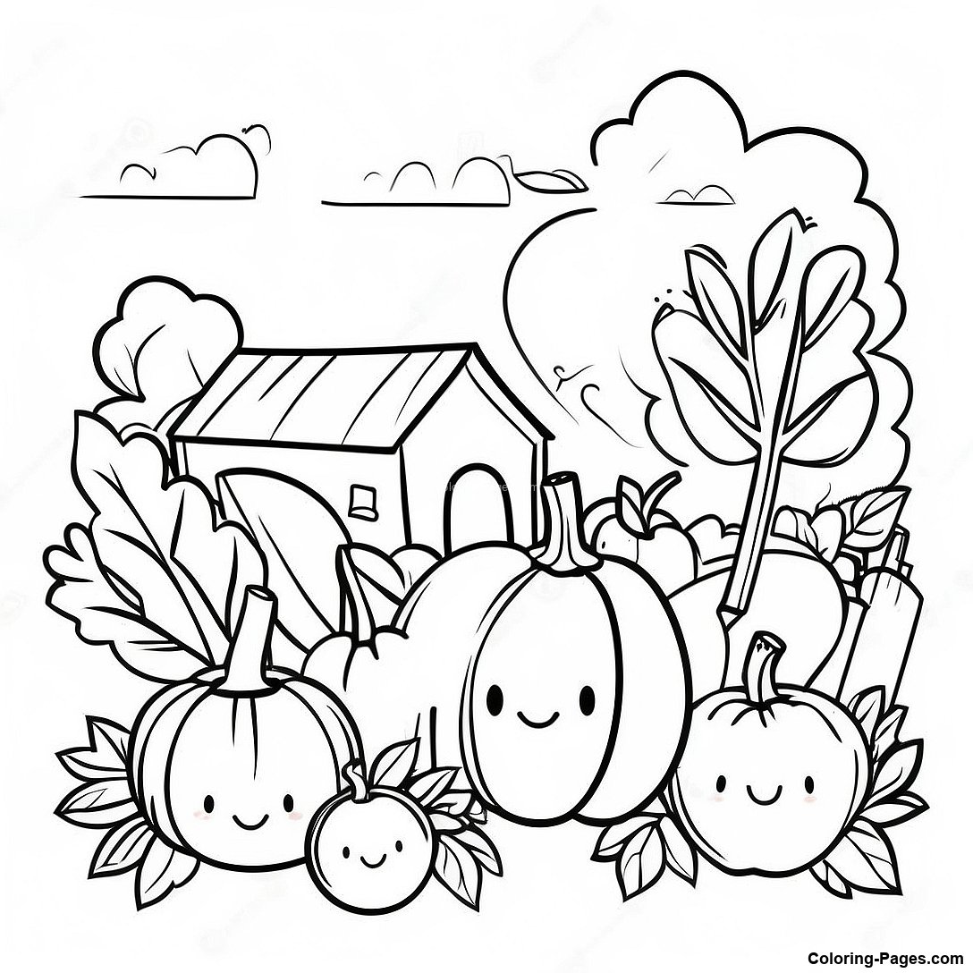 Download Printable PDF of Harvest Festival Scene Coloring Page