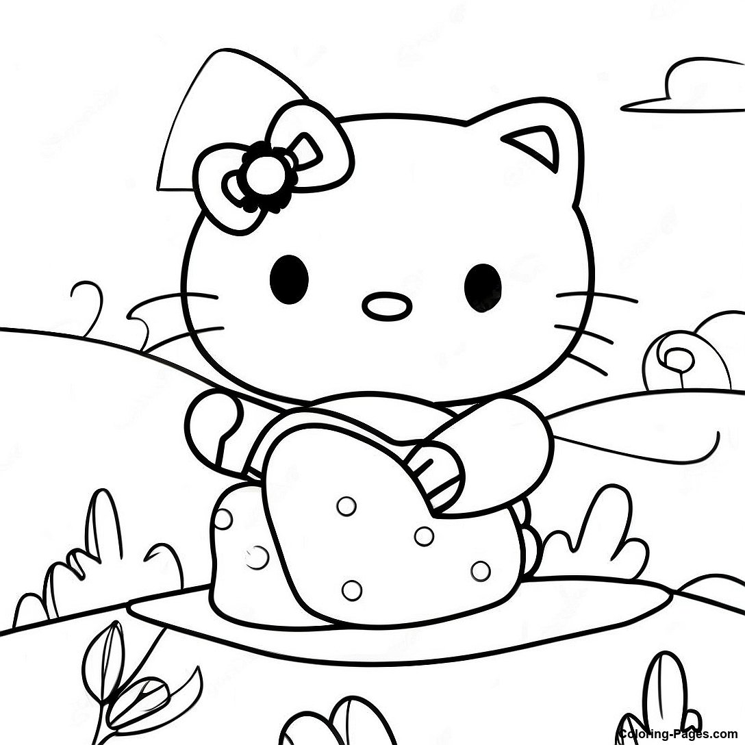 Adventurous Hello Kitty in a Balloon Coloring Page