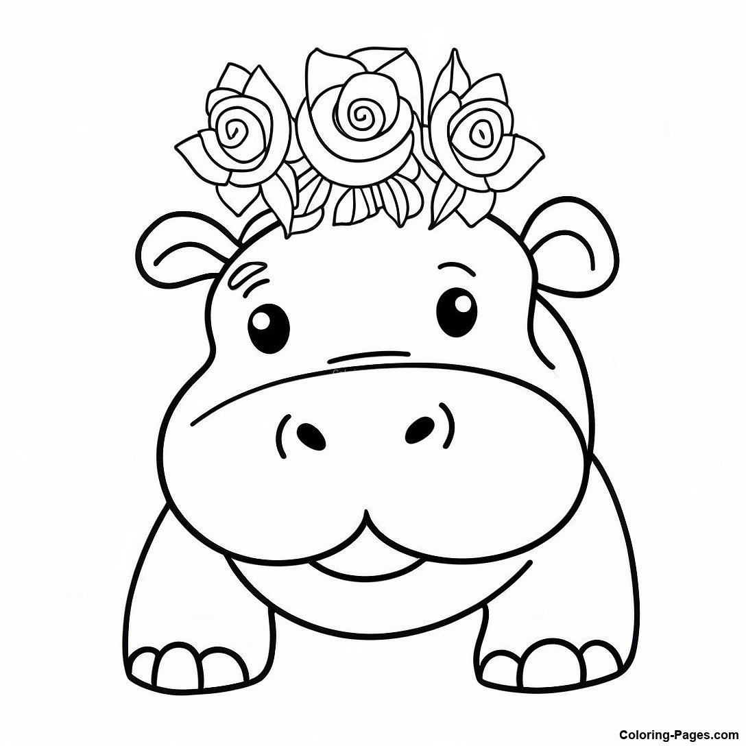 Hippo With A Flower Crown Coloring Page