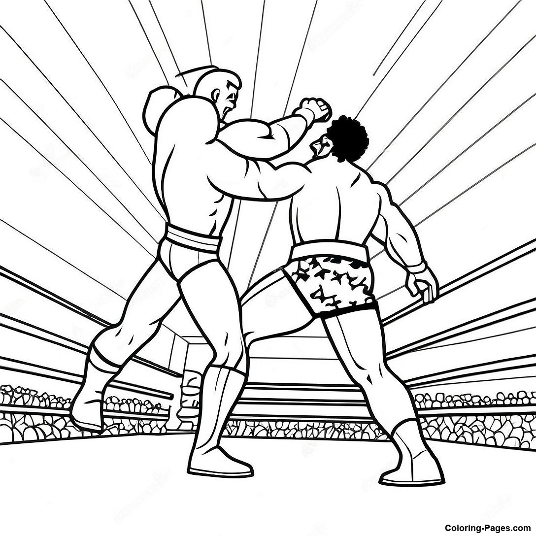Download Printable PDF of Intense Wwe Match Scene Coloring Page