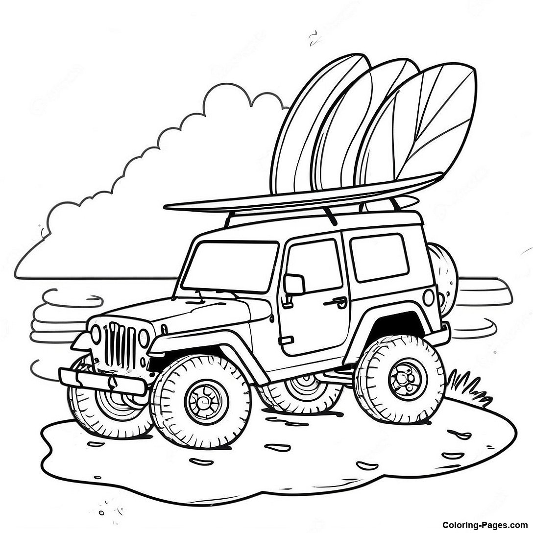 Download Printable PDF of Jeep With Surfboards On Roof Coloring Page