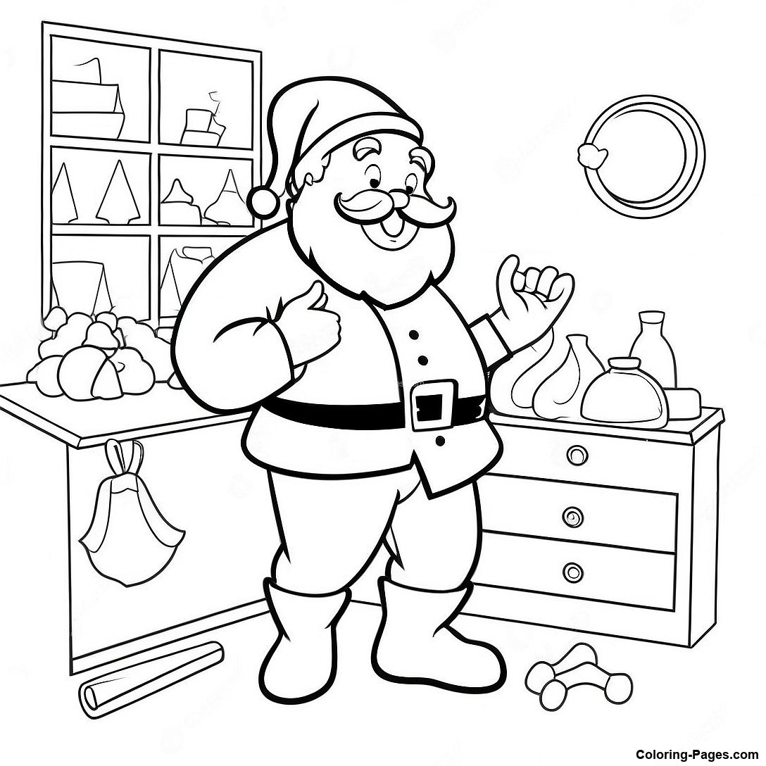 Jolly Santa In His Workshop Coloring Page