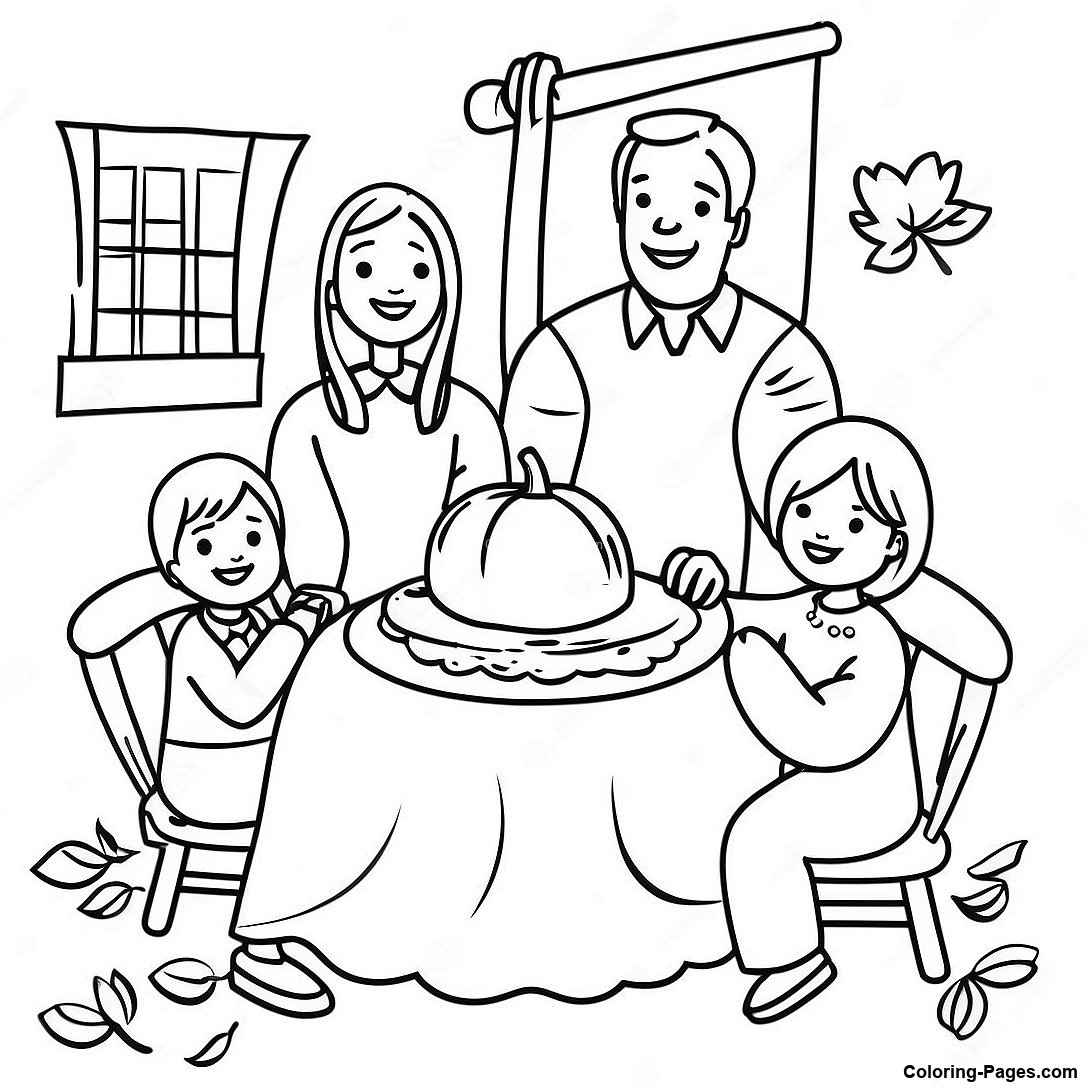 Download Printable PDF of Joyful Family Gathering Thanksgiving Coloring Page
