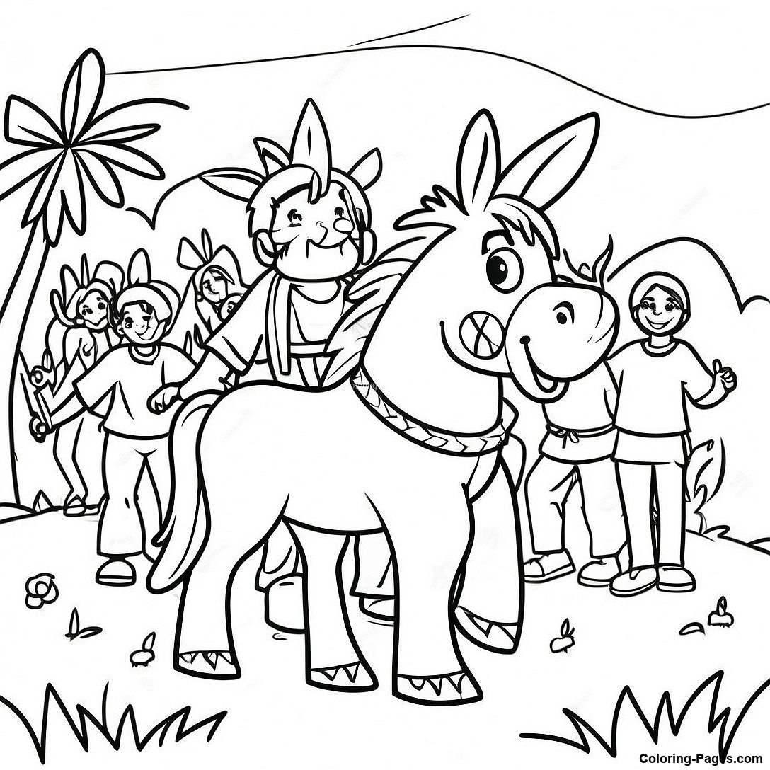 Download Printable PDF of Joyful Palm Sunday Celebration Coloring Page