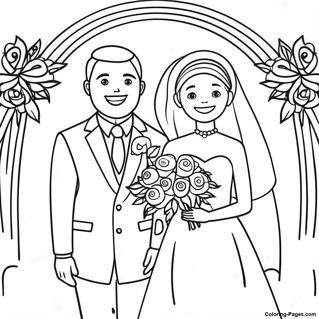 Download Printable PDF of Joyful Wedding Ceremony Coloring Page
