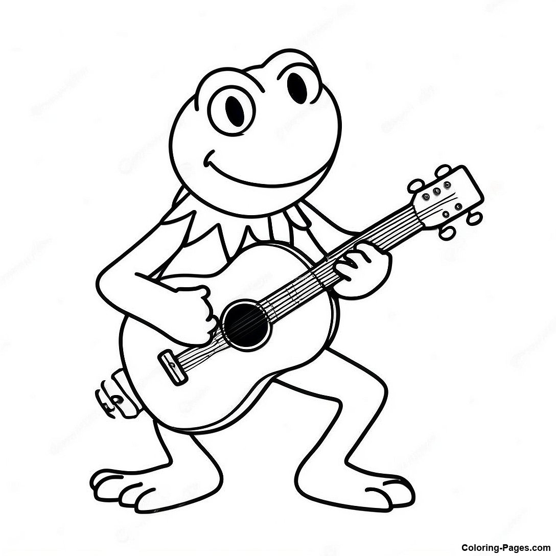 Download Printable PDF of Kermit The Frog Playing Guitar Coloring Page