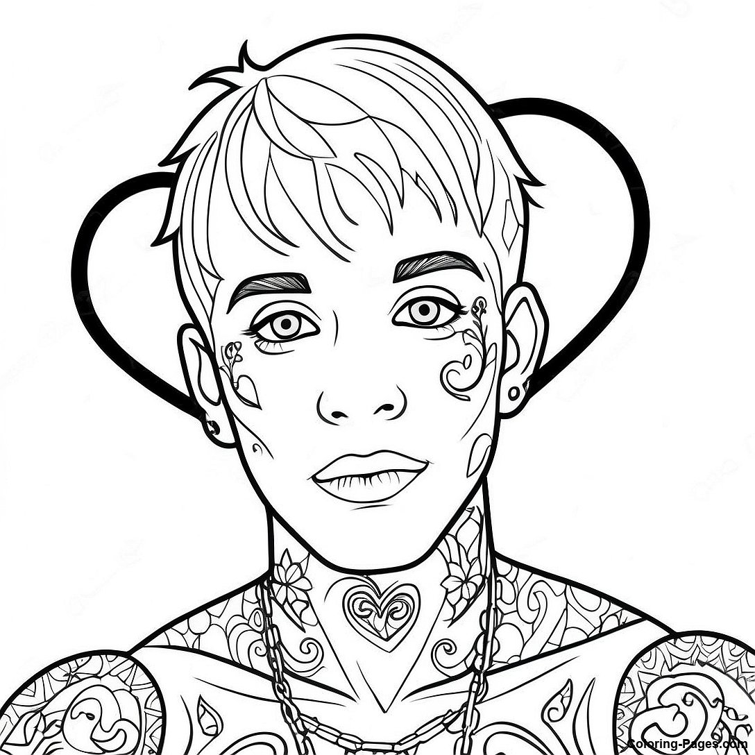 Download Printable PDF of Lil Peep With Heart Tattoo Coloring Page