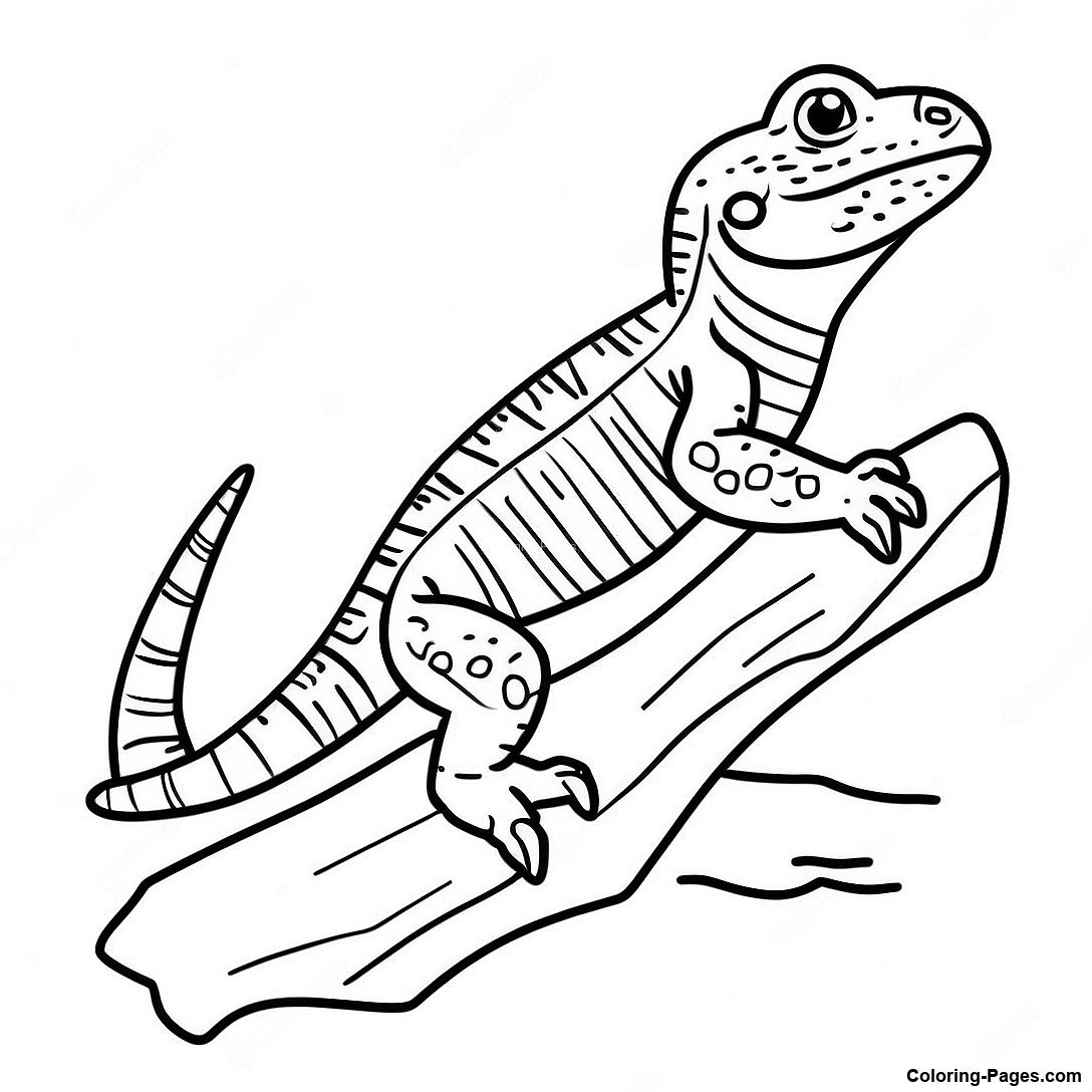Majestic Bearded Dragon On A Log Coloring Page