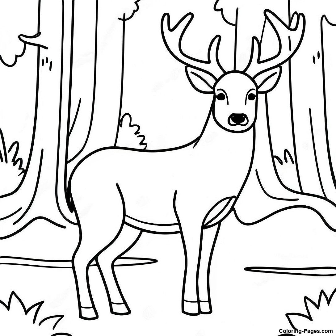Download Printable PDF of Majestic Buck Deer In Forest Coloring Page