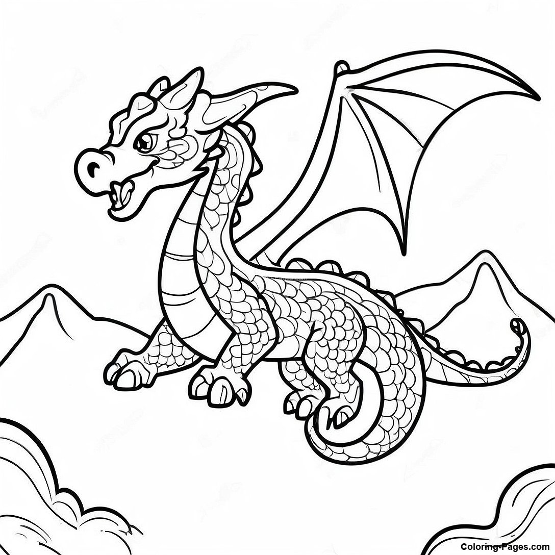 Download Printable PDF of Majestic Dragon Flying Over Mountains Coloring Page