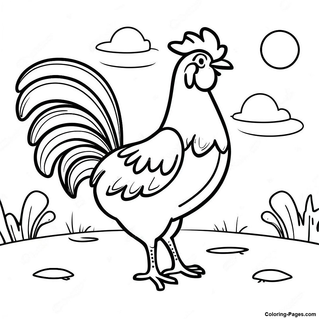Majestic Rooster Crowing At Sunrise Coloring Page