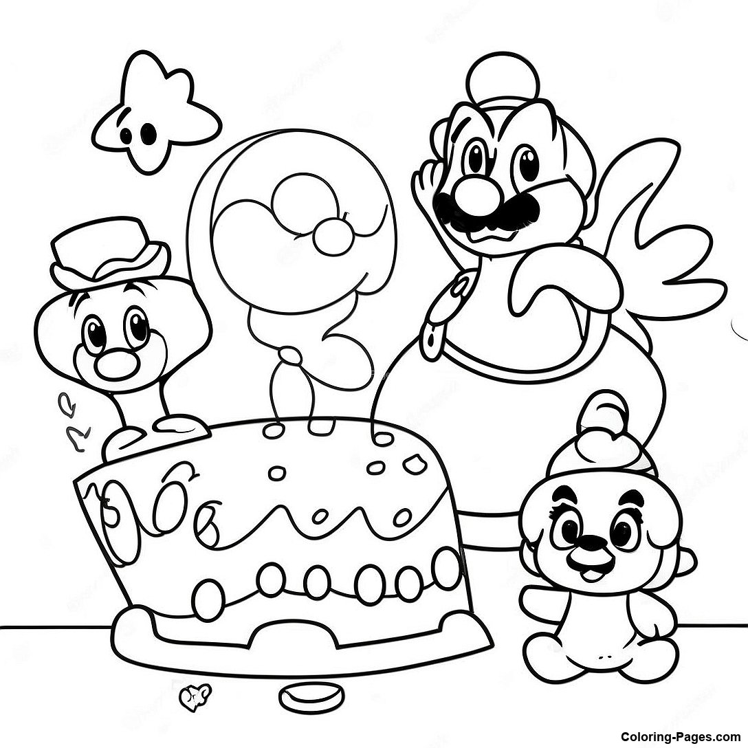 Download Printable PDF of Mario And Friends Birthday Party Coloring Page
