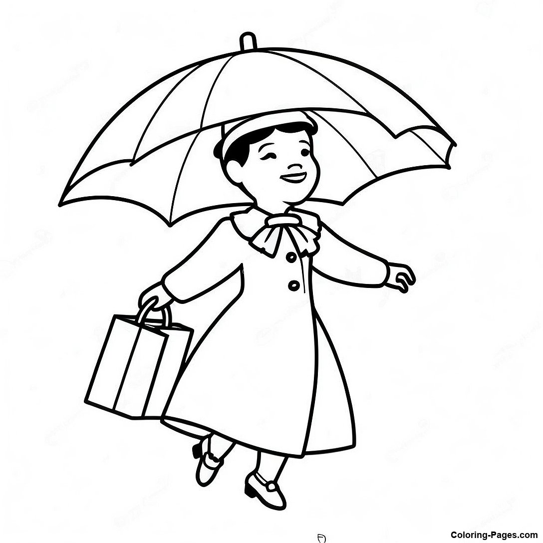 Download Printable PDF of Mary Poppins Flying With Umbrella Coloring Page