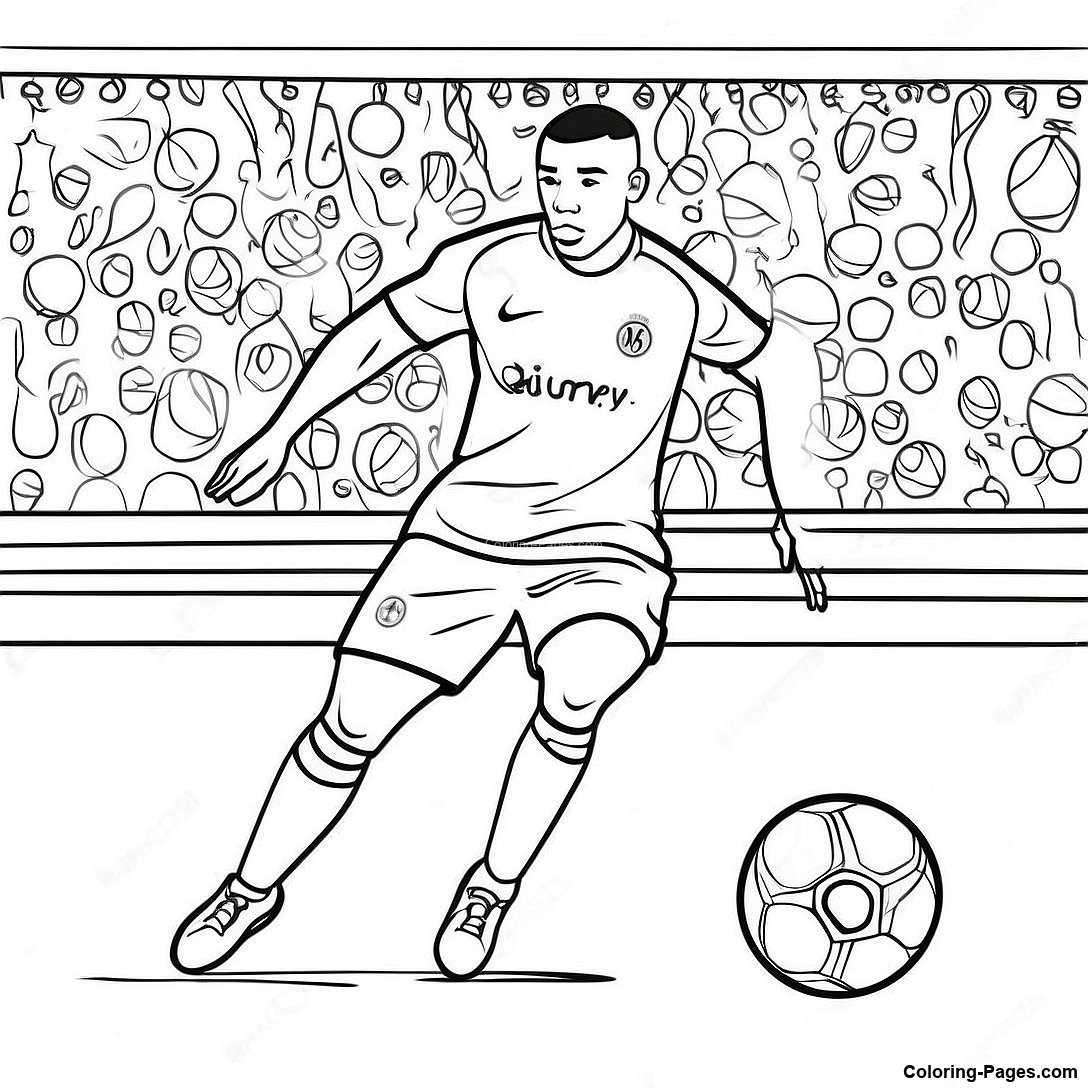 Download Printable PDF of Mbappe Dribbling The Ball Coloring Page
