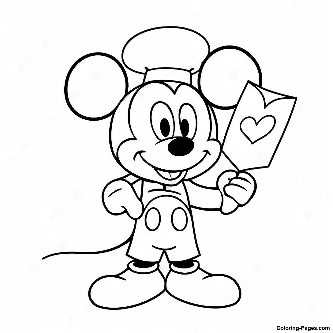 Mickey Mouse Holding A Valentine Card Coloring Page