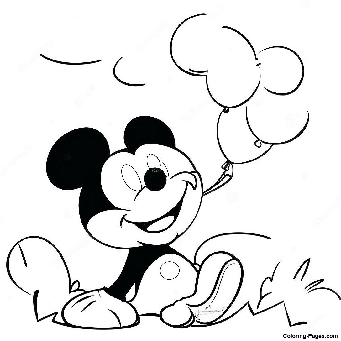 Mickey Mouse Holding Balloons Coloring Page