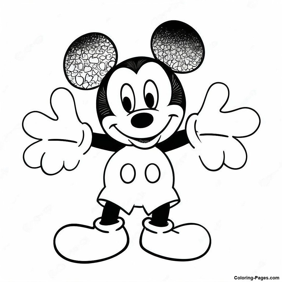 Download Printable PDF of Mickey Mouse Surrounded By Love Hearts Coloring Page