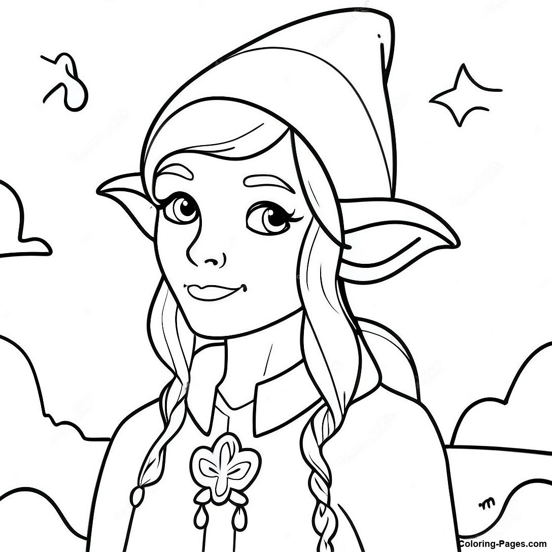 Mysterious Realistic Elf With Moonlight Coloring Page