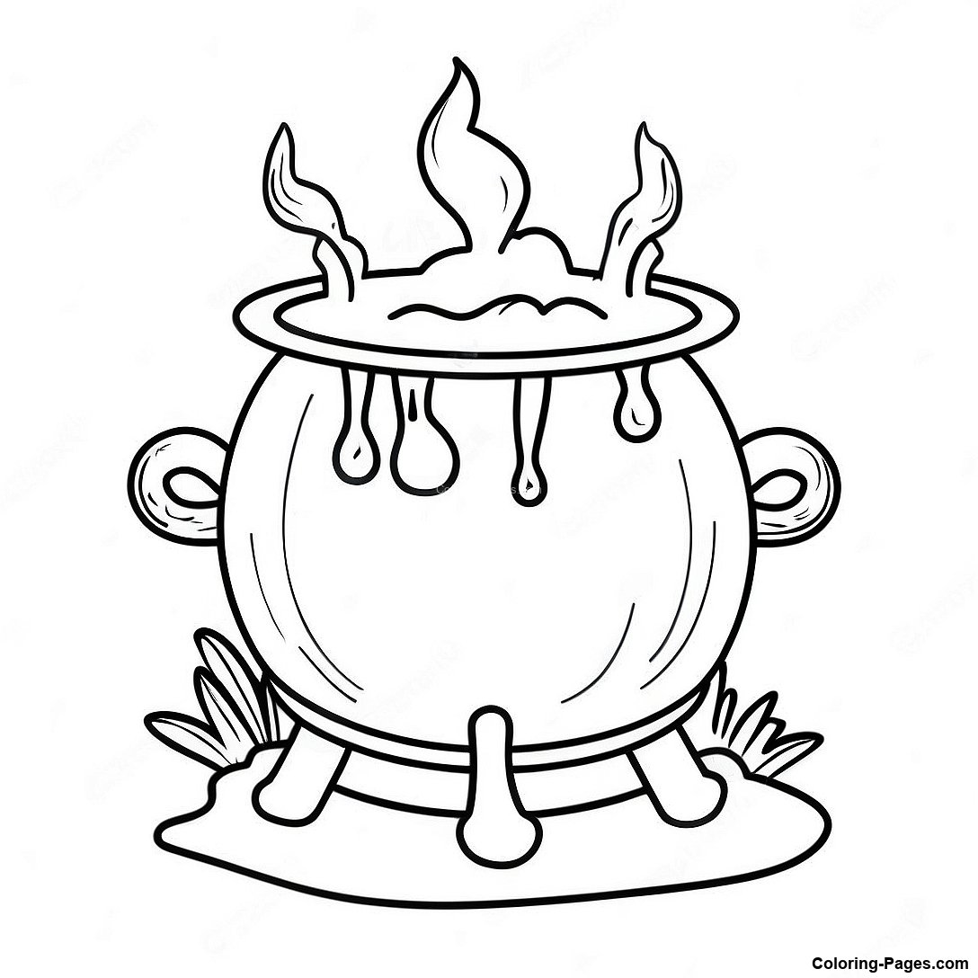 Download Printable PDF of Mystical Potion Cauldron Coloring Page