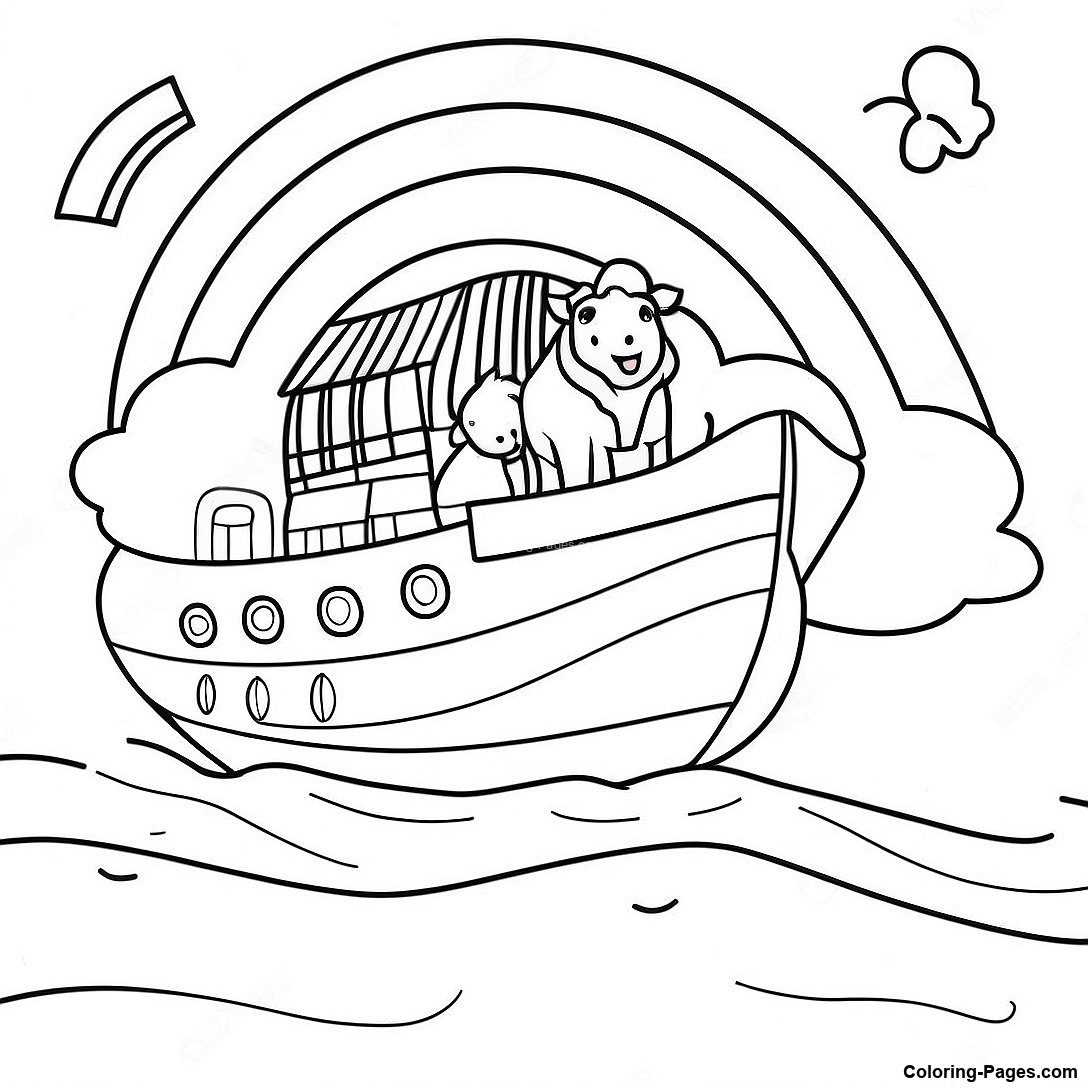 Download Printable PDF of Noah's Ark With Rainbow Coloring Page