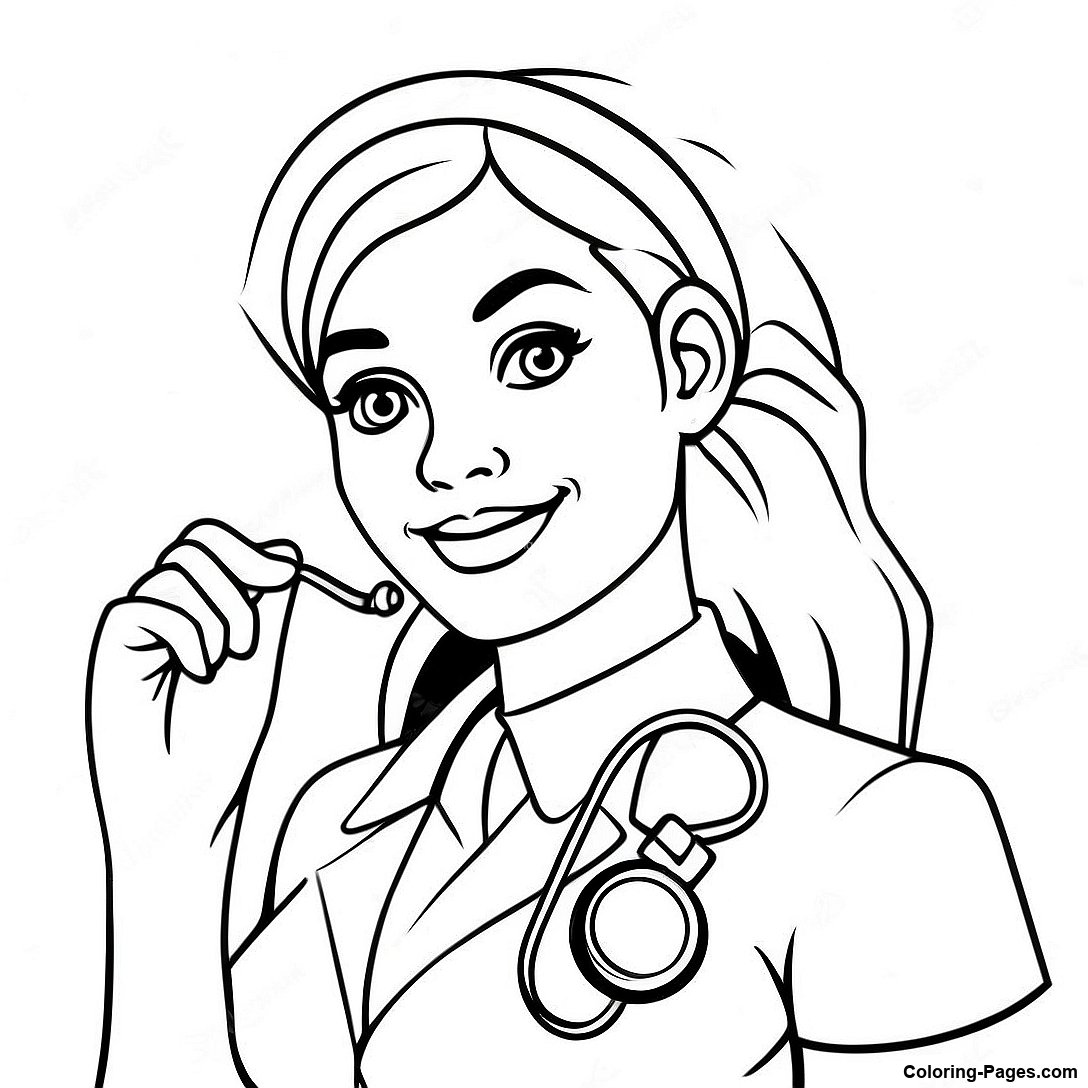 Download Printable PDF of Nurse Holding A Stethoscope Coloring Page