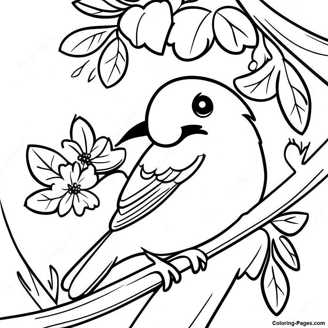 Download Printable PDF of Orioles Nesting In A Tree Coloring Page