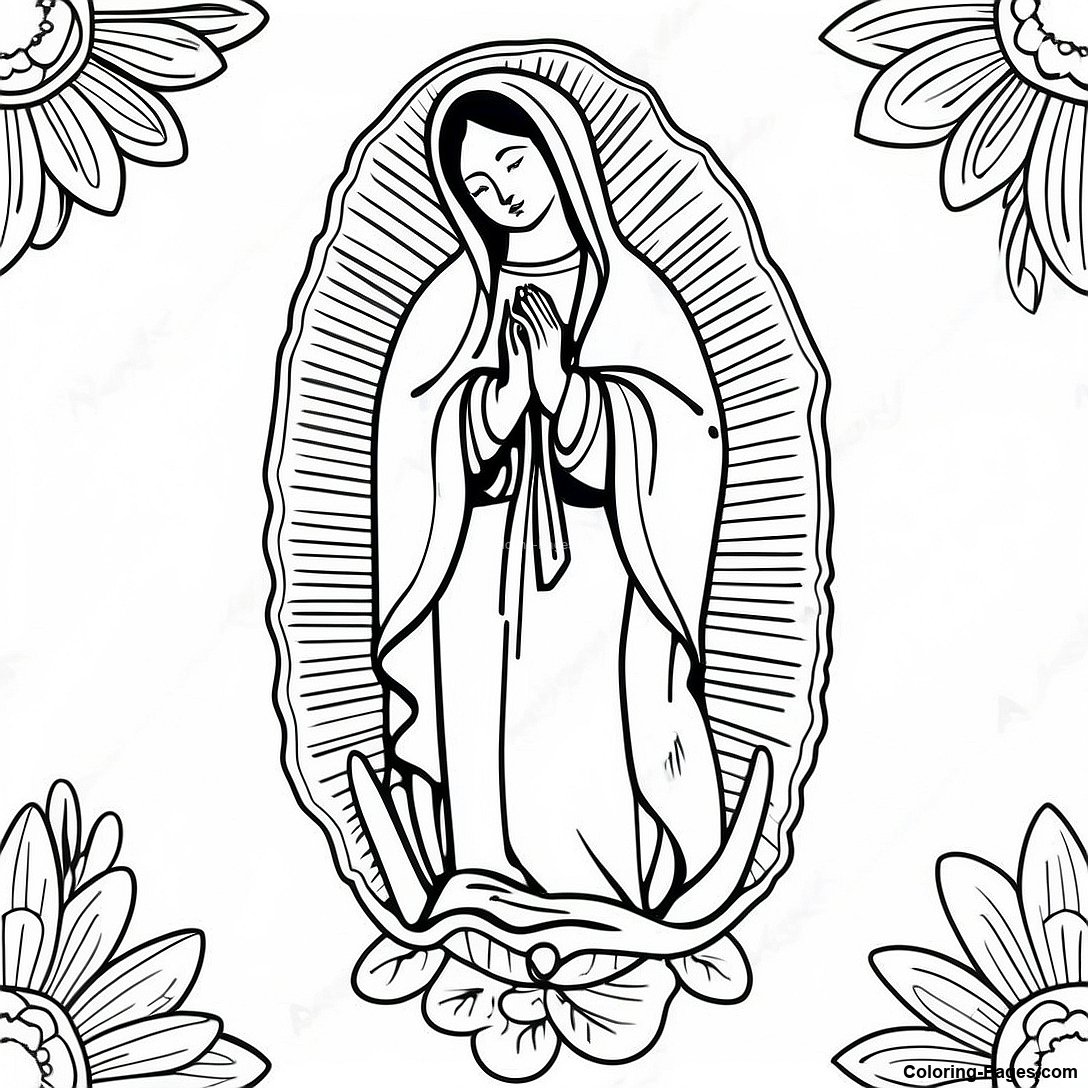Download Printable PDF of Our Lady Of Guadalupe With Angels Coloring Page