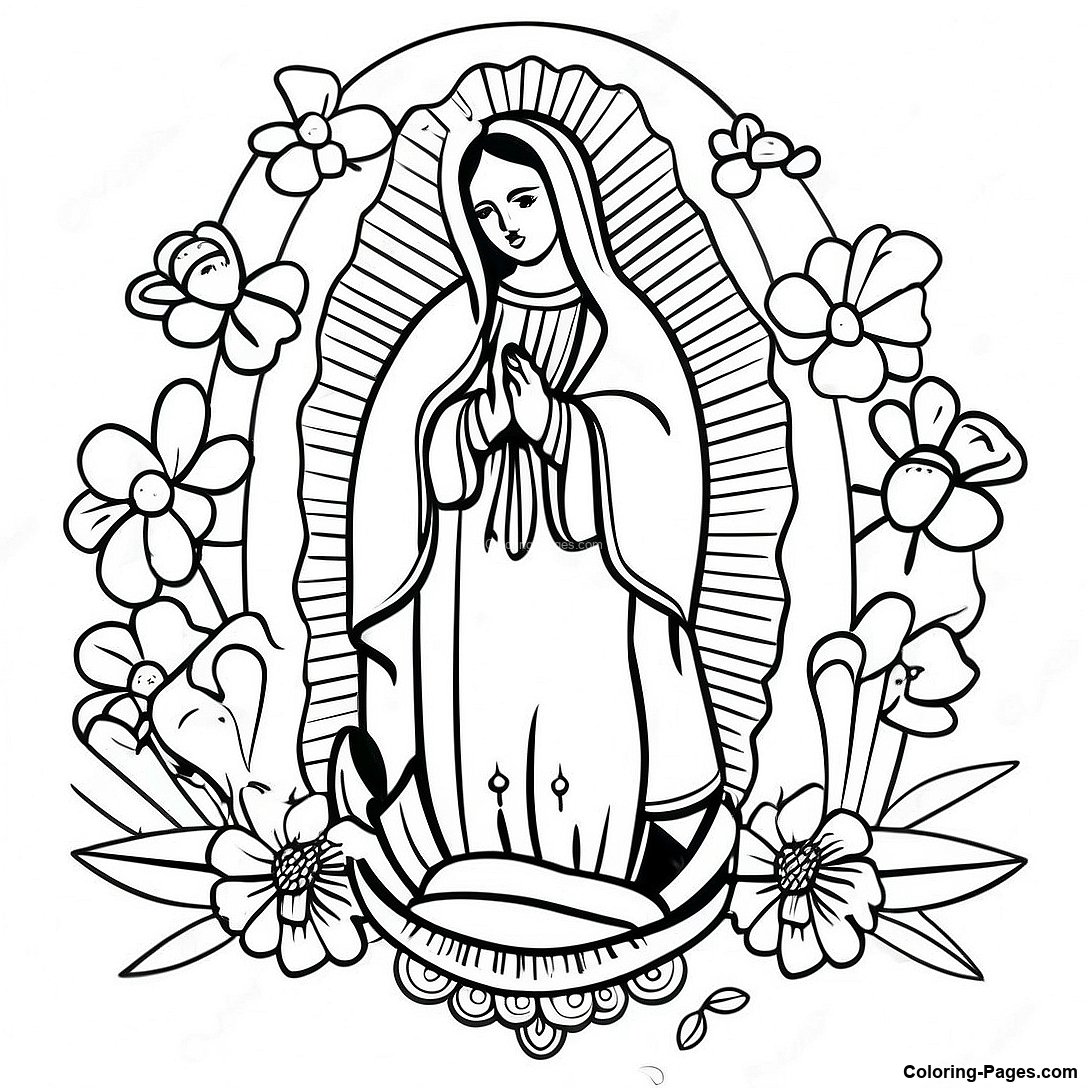 Our Lady Of Guadalupe With Flowers Coloring Page