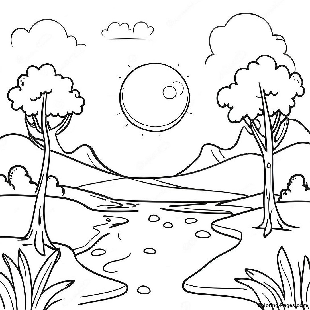 Download Printable PDF of Peaceful Nature Life Coloring Page