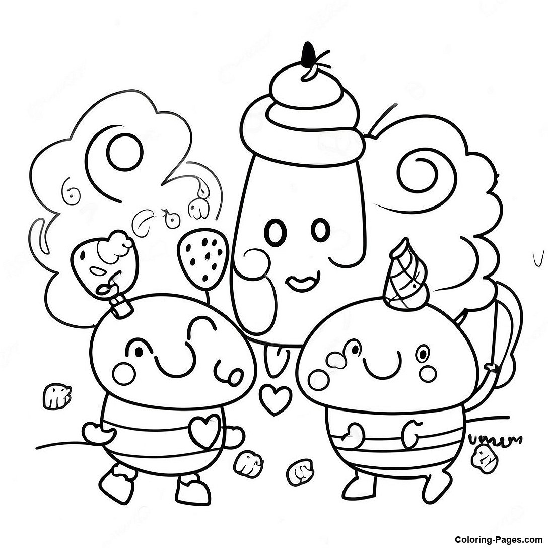 Download Printable PDF of Peppa Pig And Friends With Ice Cream Coloring Page