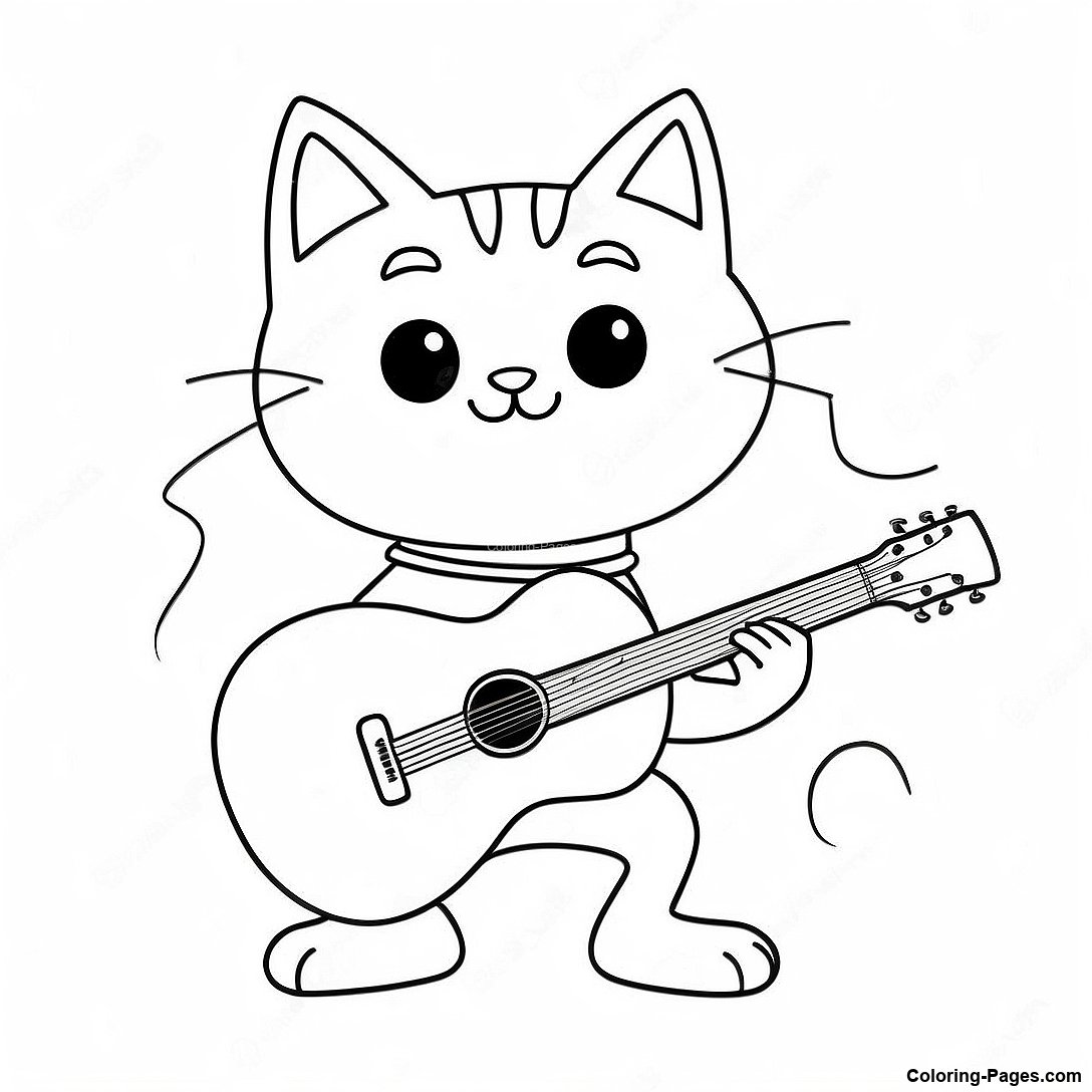 Download Printable PDF of Pete The Cat Playing Guitar Coloring Page