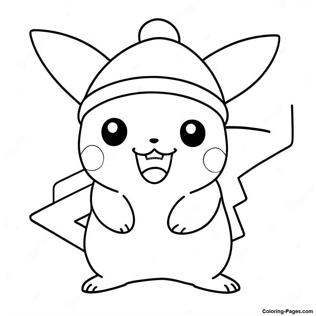 Download Printable PDF of Pikachu In A Santa Hat Coloring Page