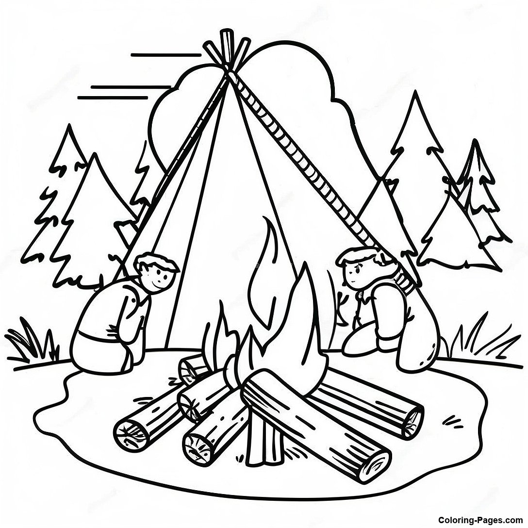 Pioneer Campfire Scene Coloring Page