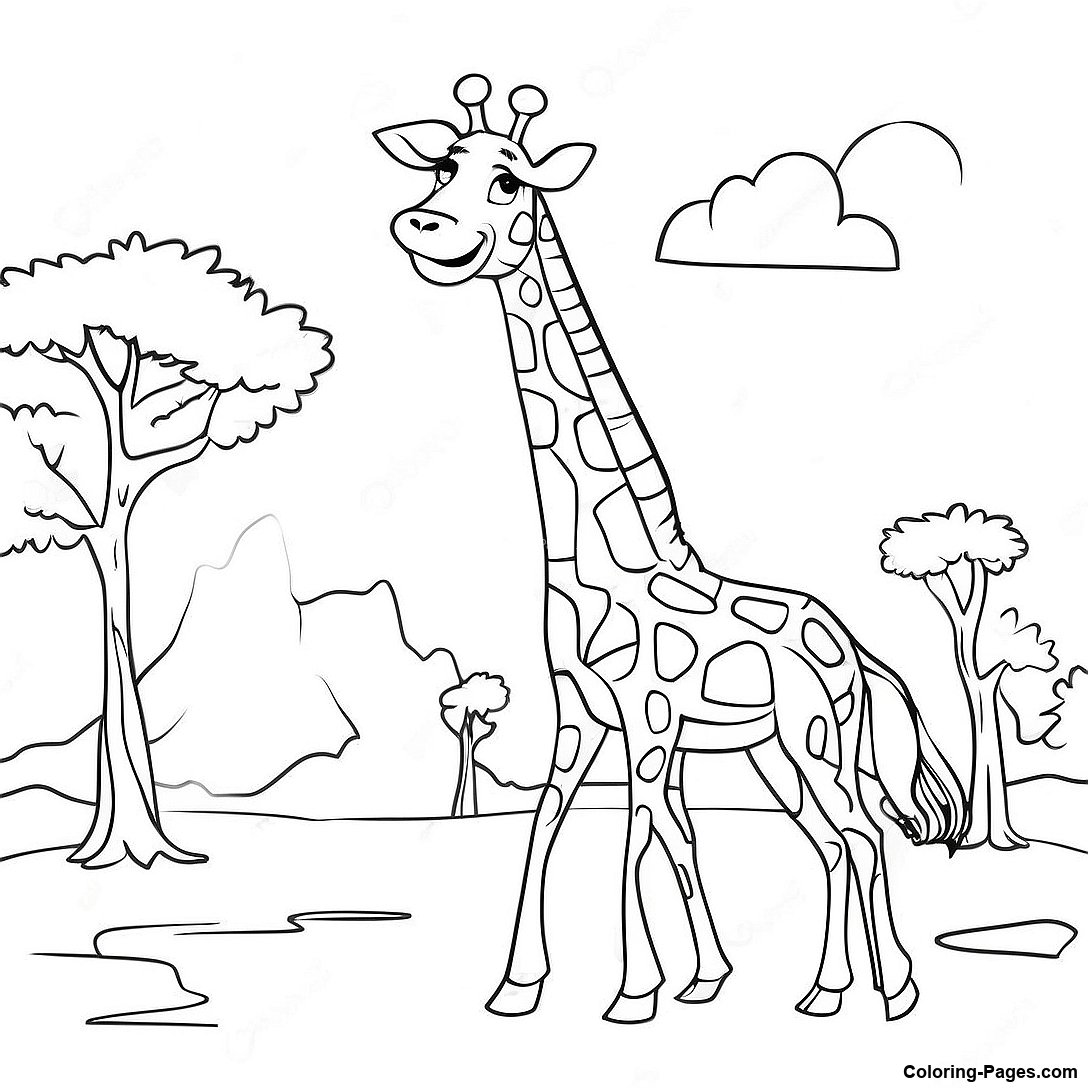 Download Printable PDF of Playful African Giraffe Coloring Page