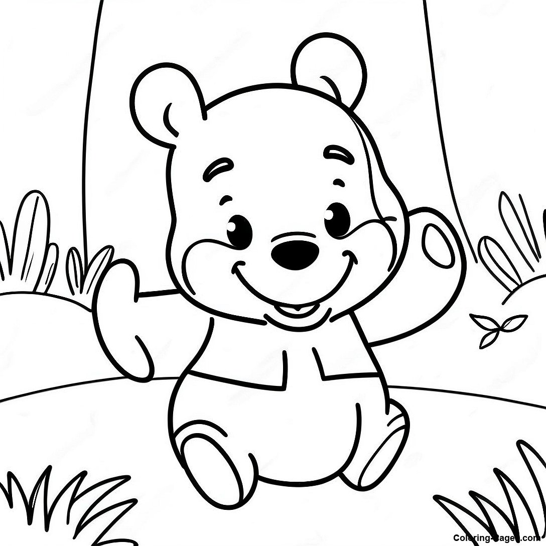 Playful Baby Winnie The Pooh In The Forest Coloring Page