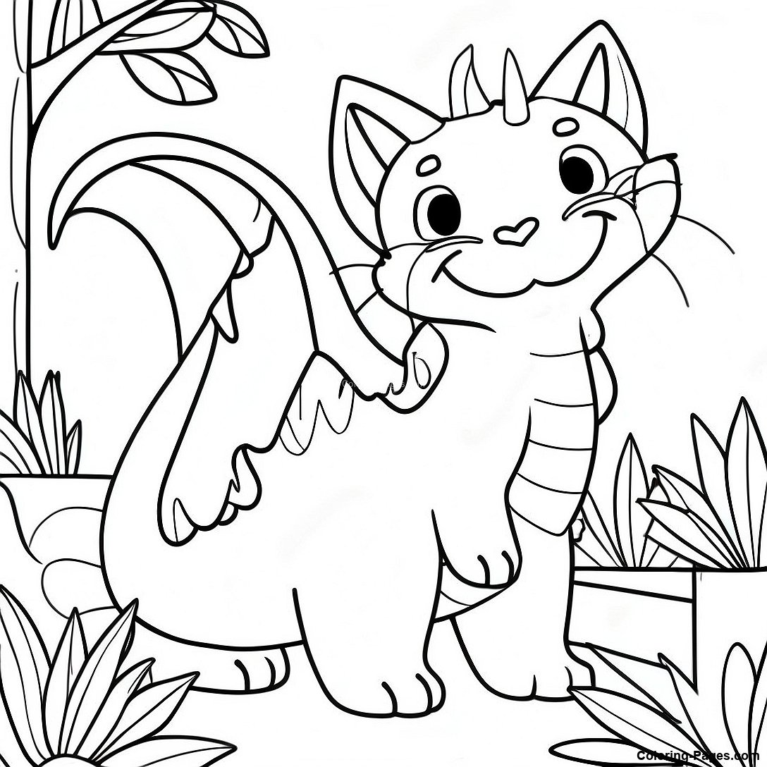 Download Printable PDF of Playful Cat Dragon In A Garden Coloring Page