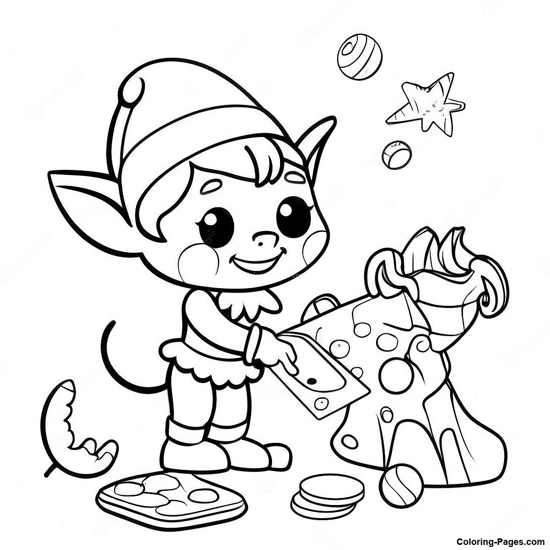 Download Printable PDF of Playful Elf Making Toys Coloring Page