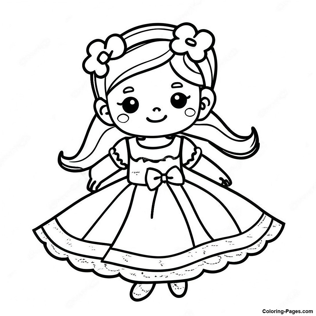 Download Printable PDF of Playful Girl In A Dress Coloring Page