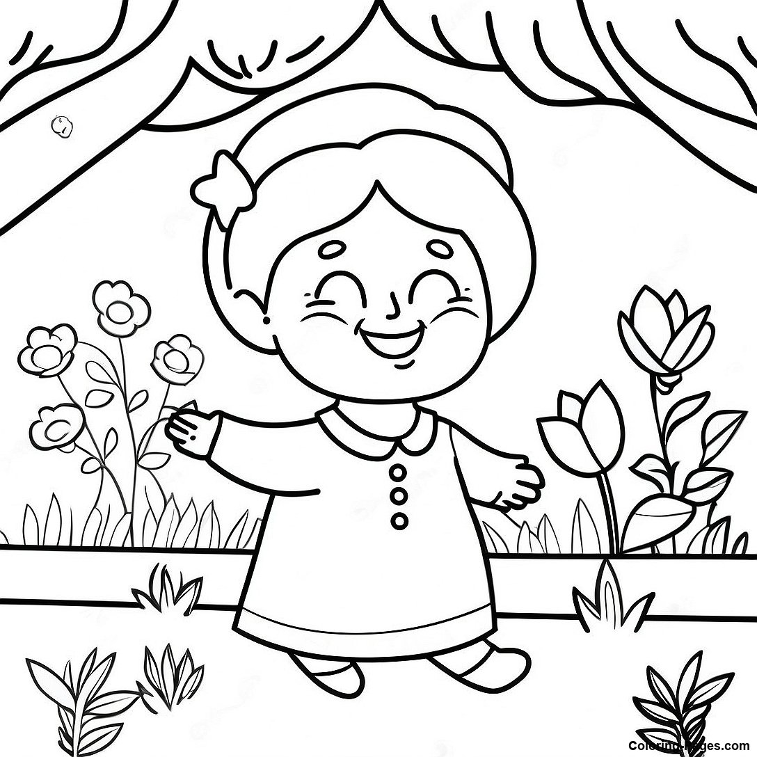 Playful Grandma In A Garden Coloring Page
