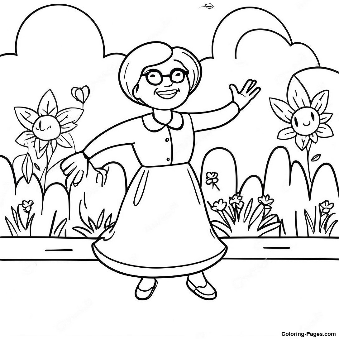 Playful Grandma In A Garden Coloring Page