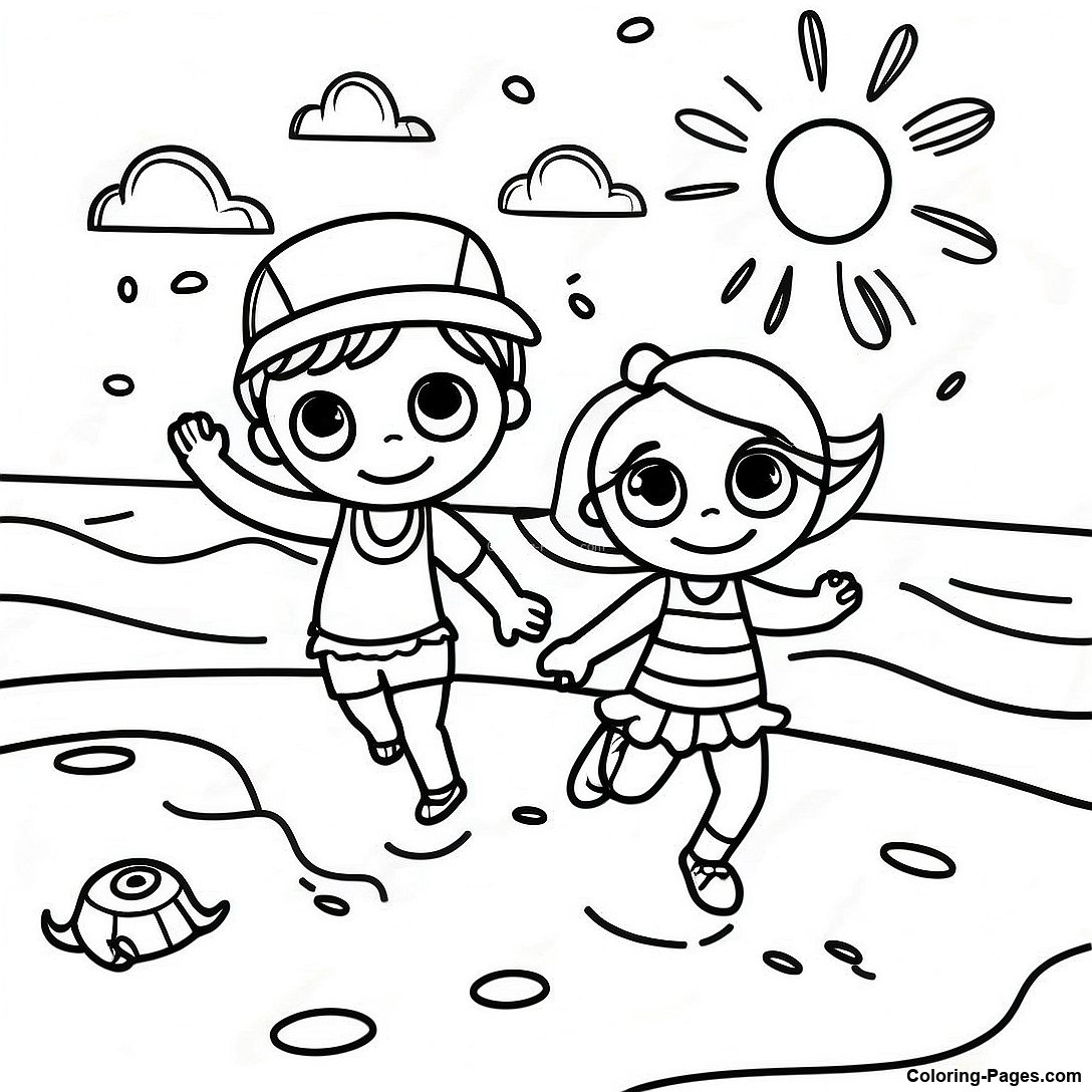 Download Printable PDF of Playful Kids At The Beach Coloring Page