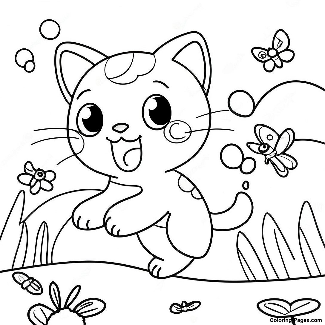 Playful Mew Chasing Butterflies Coloring Page