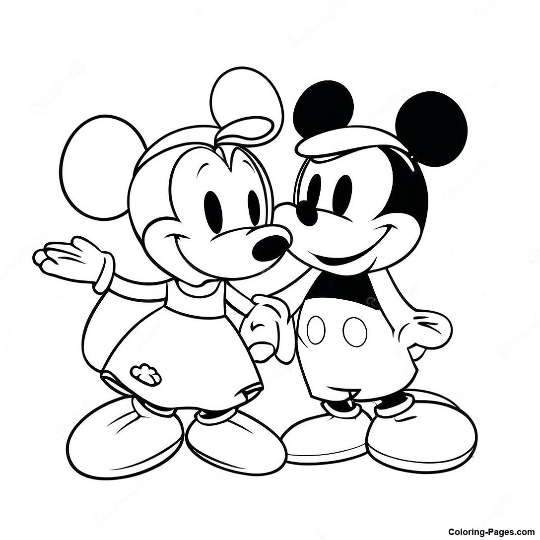 Playful Mickey Mouse And Minnie Mouse Coloring Page