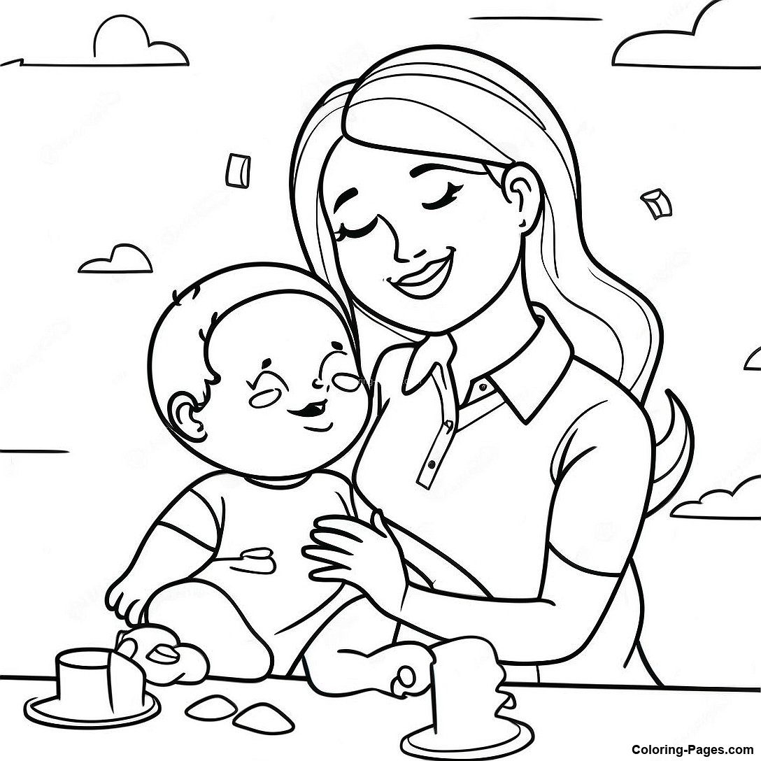 Download Printable PDF of Playful Mommy And Me Coloring Page
