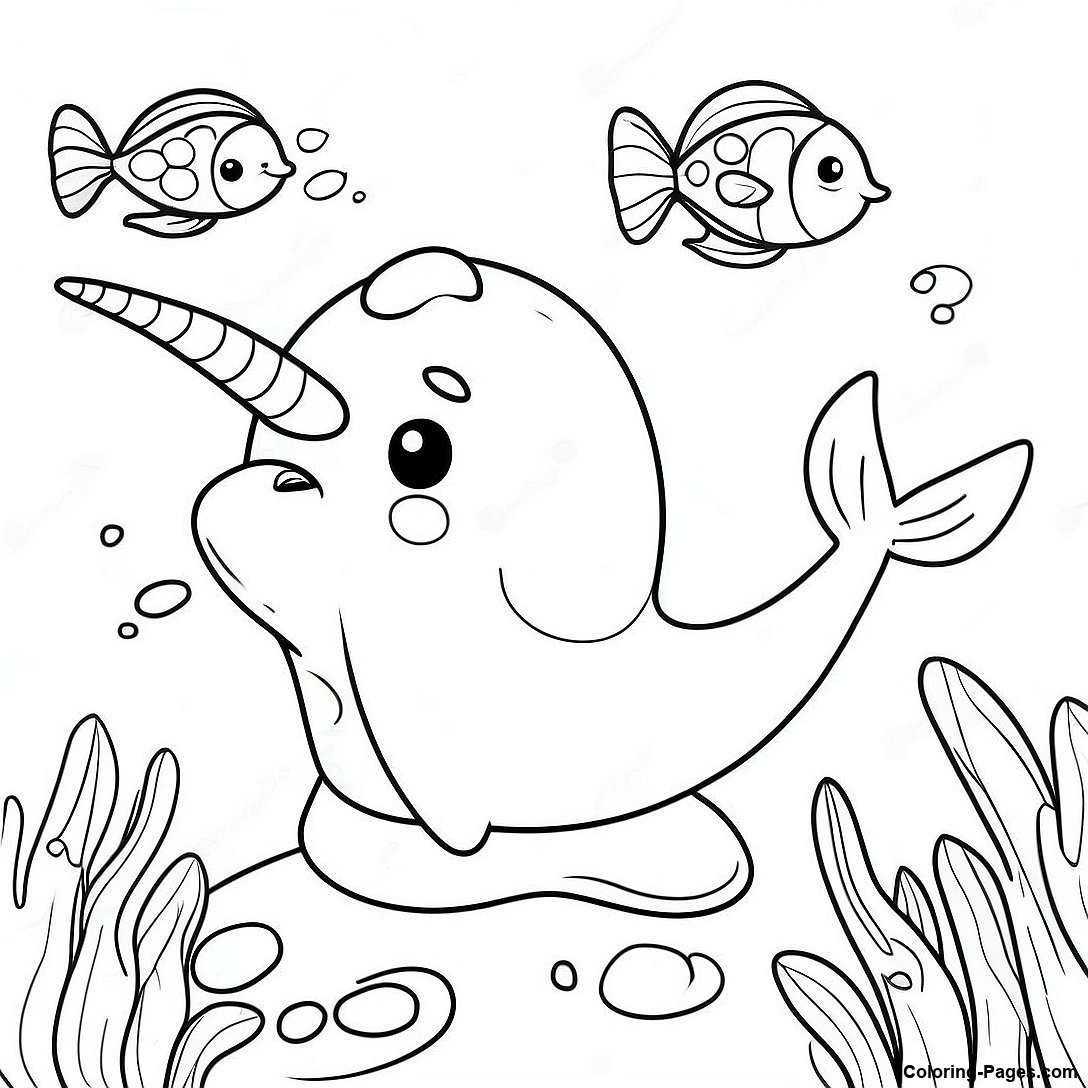 Playful Narwhal With Fish Coloring Page