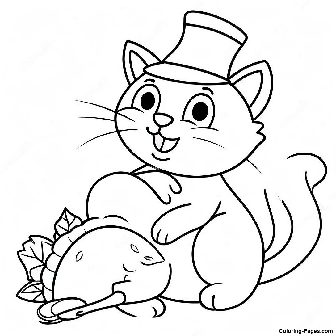 Playful Thanksgiving Cat With Turkey Coloring Page