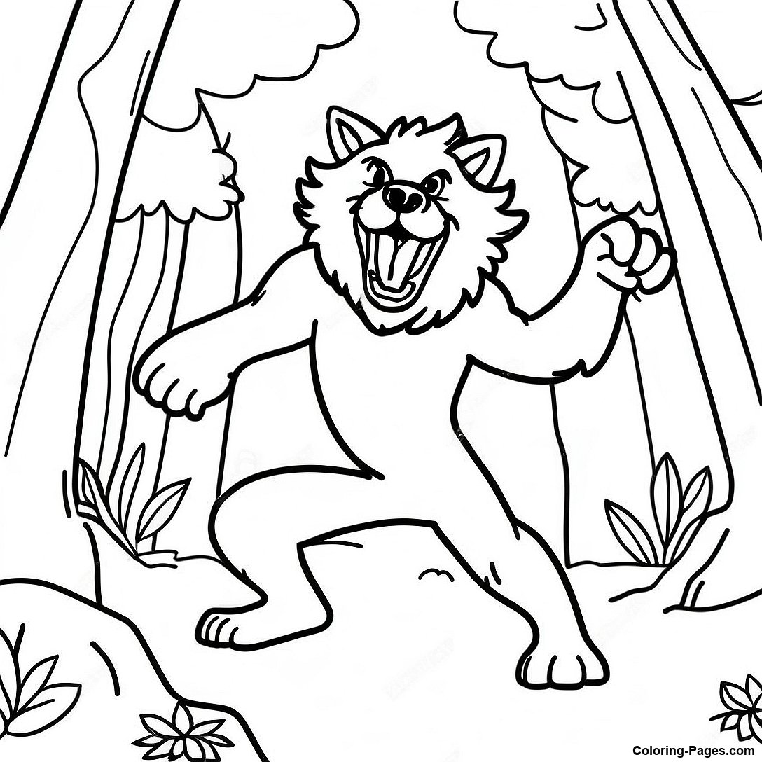 Playful Werewolf Dancing In The Forest Coloring Page
