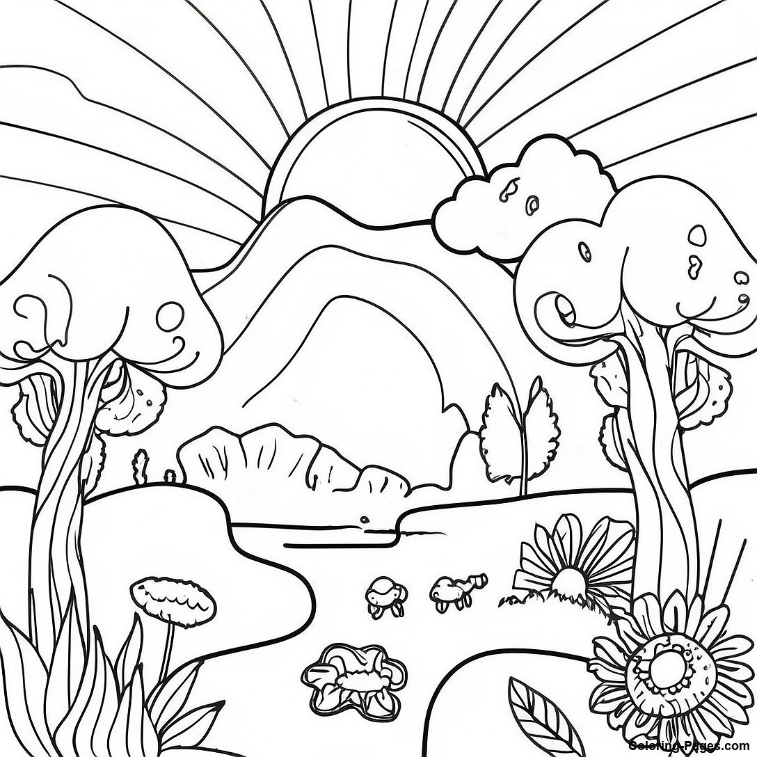 Psychedelic Aesthetic Trippy Landscape Coloring Page