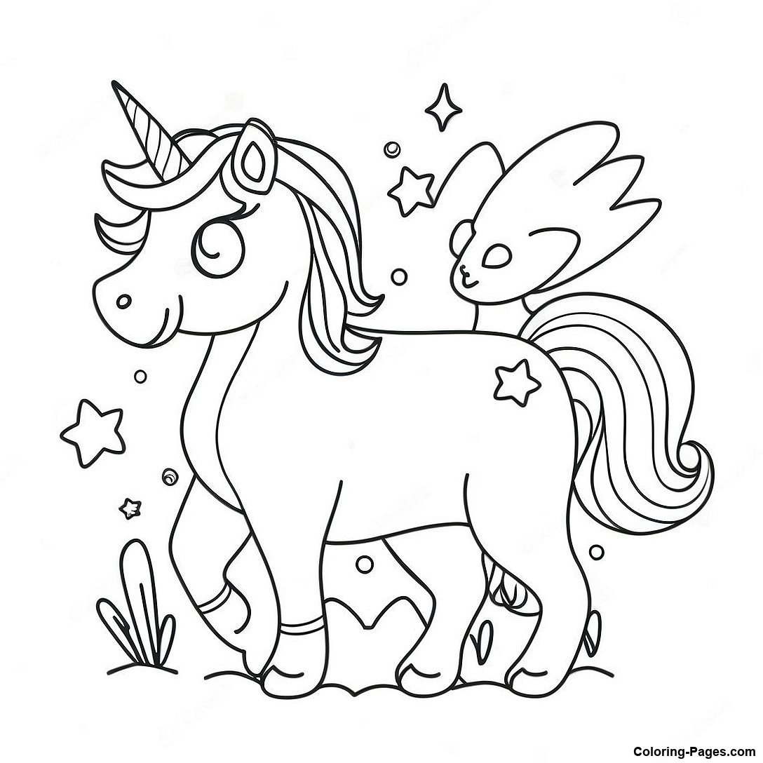 Sparkling Unicorn with Wings Coloring Page