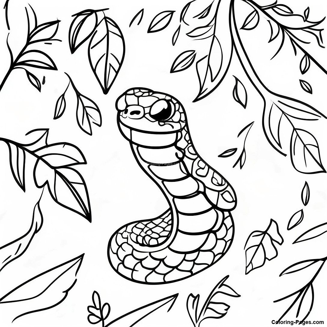 Realistic Jungle Snake Camouflaged In Leaves Coloring Page